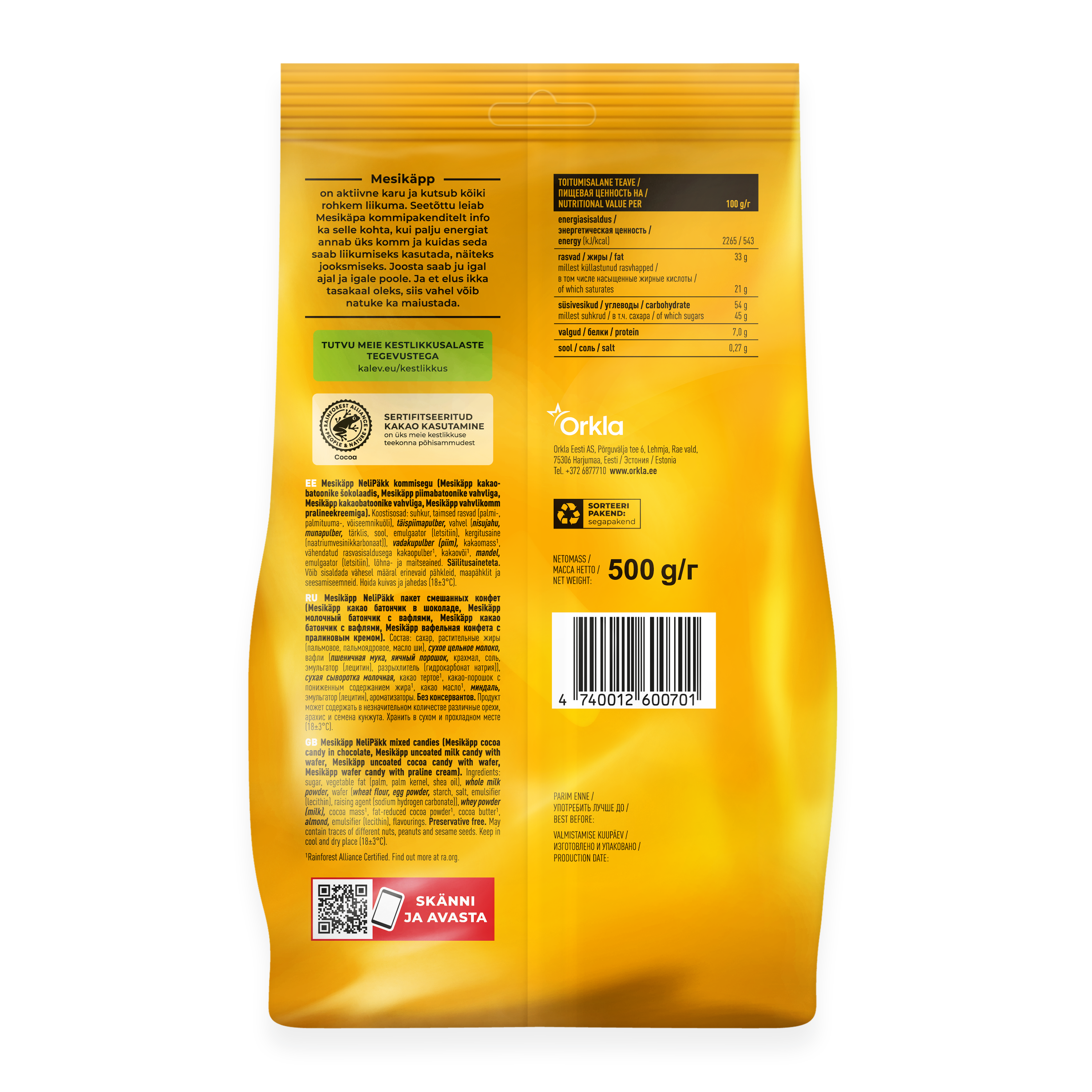 sugar, vegetable fat (palm, palm kernel, shea oil), whole milk powder, wafer (wheat flour, egg powder, starch, salt, emulsifier (lecithin), raising agent (sodium hydrogen carbonate)), whey powder (milk), cocoa mass, fat-reduced cocoa powder, cocoa butter, almond, emulsifier (lecithin), flavourings. Preservative free. May contain traces of different nuts, peanuts and sesame seeds.