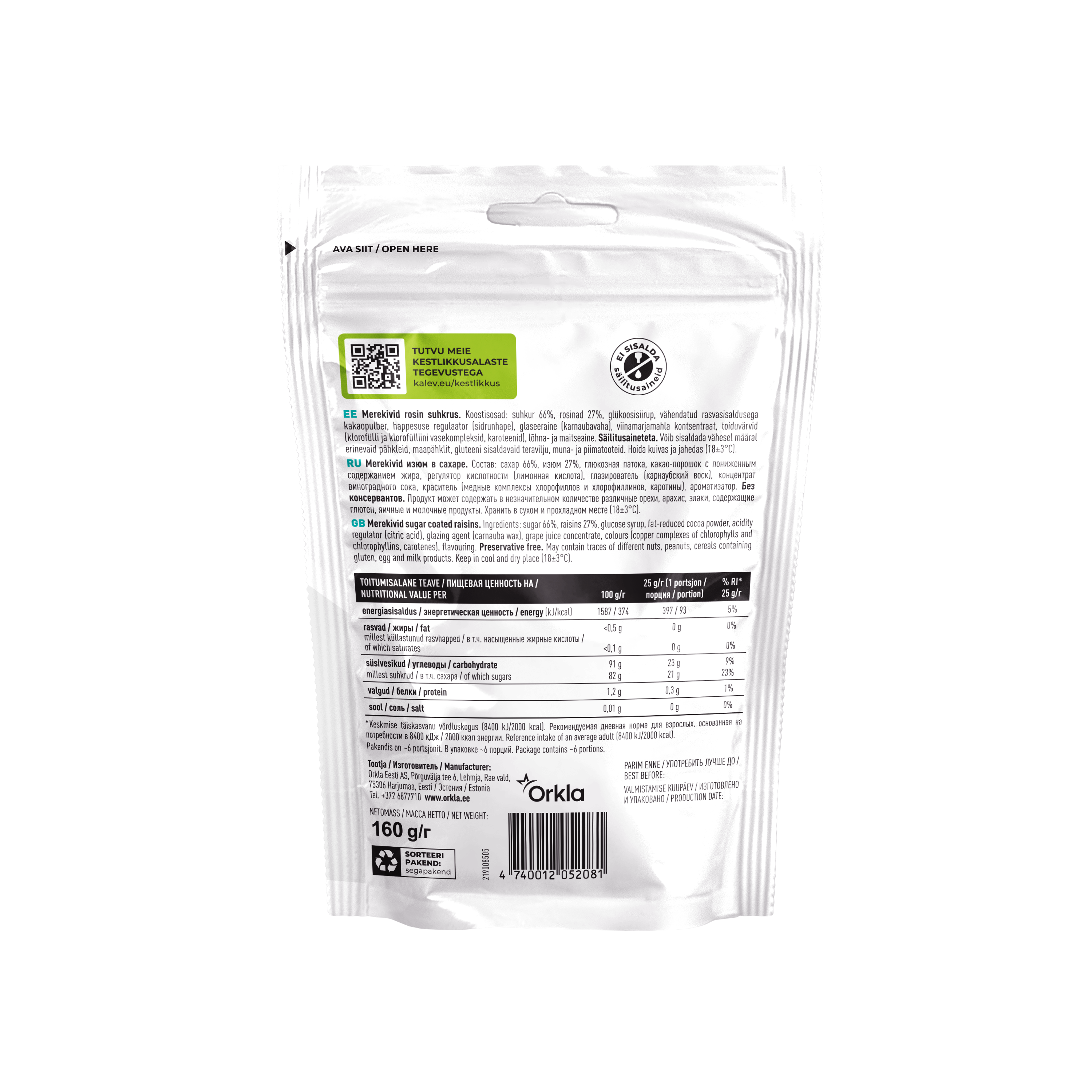 Kalev изюм в сахаре «Merekivid» (Морские камешки) 160г