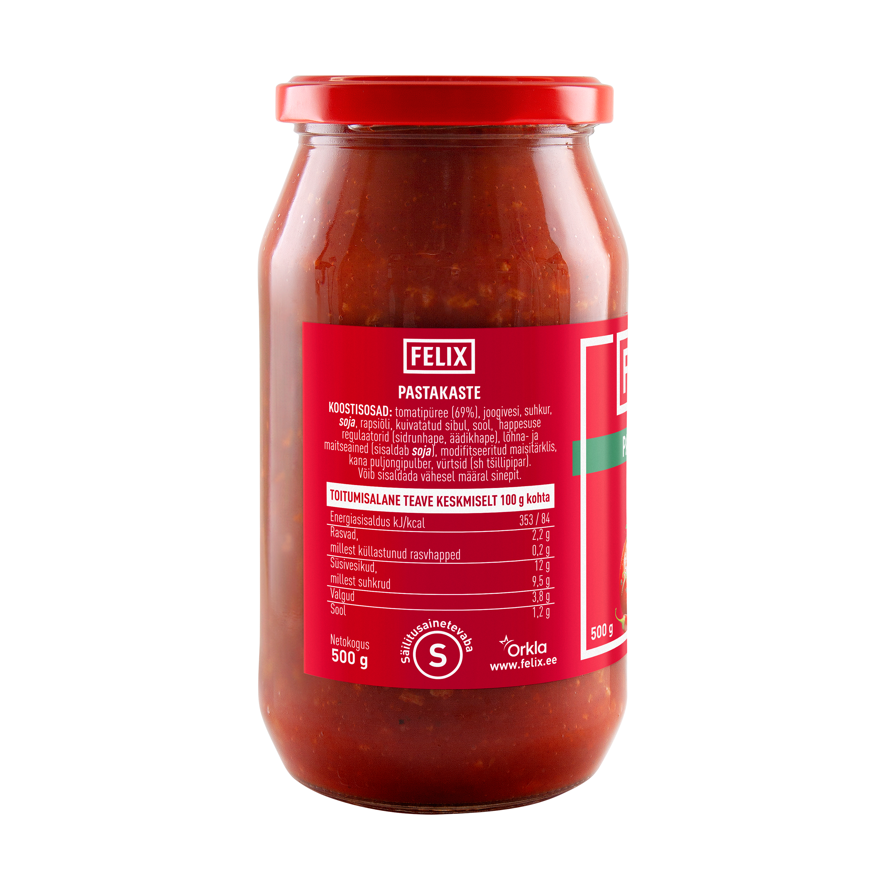 tomatipüree (70%), joogivesi, soja, suhkur, rapsiõli, kuivatatud sibulatükid, sool, happesuse regulaatorid (sidrunhape, äädikhape), lõhna- ja maitseained (tomat ja küpsetatud kana), modifitseeritud kartulitärklis, kana puljongipulber (sh seller), vürtsid.