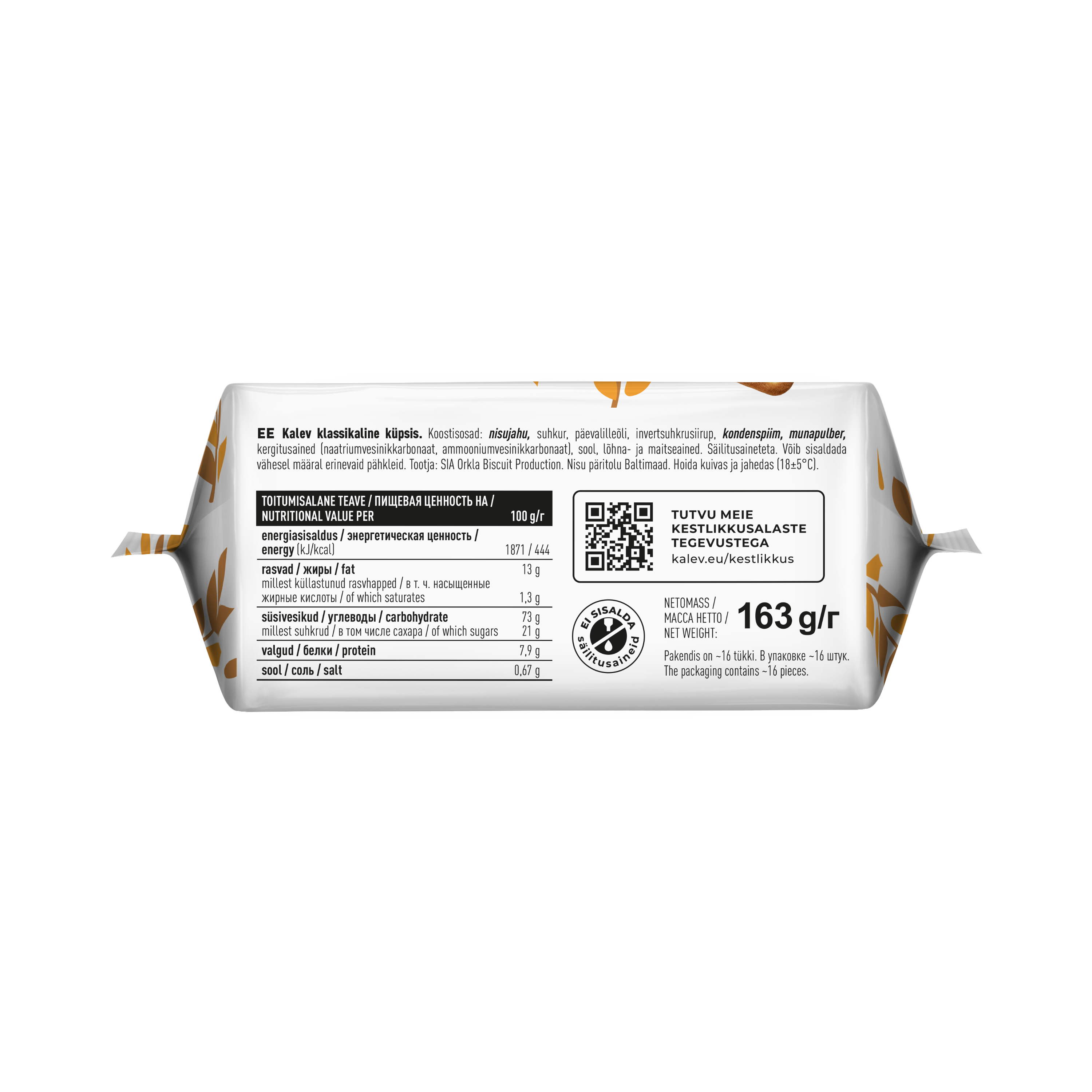 Küpsised, mis on pikki aastaid olnud eestlaste toidulaual ja südames. Kalevi klassikalise retsepti järgi valmistatud küpsised sobivad hästi küpsetamiseks või magustoitude valmistamiseks, aga ka nautimiseks kohvi või tee kõrvale.