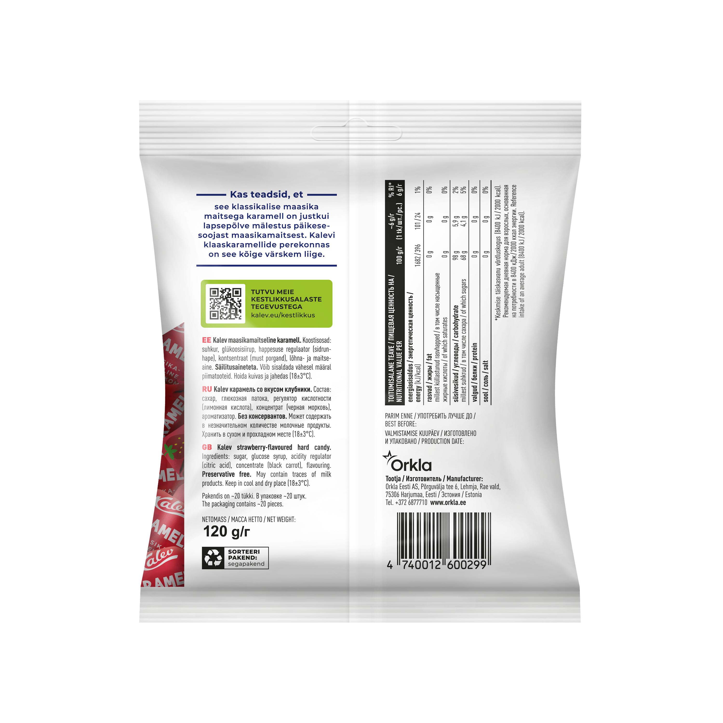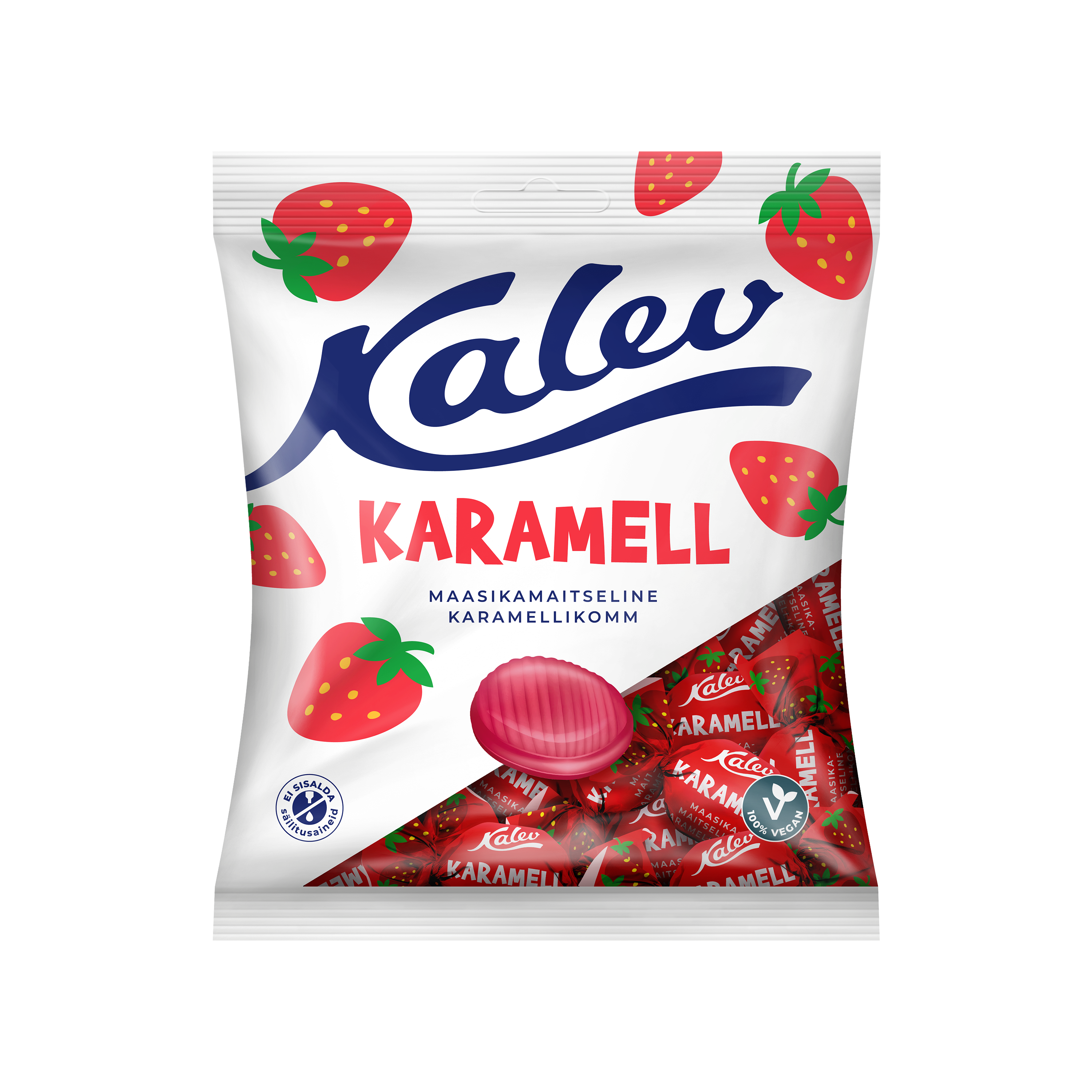 Erinevate puuviljamaitsetega karamelle on Kalev tootnud juba aastakümneid. Mõnusa magusa maasika maitsega klaaskomm on kõigile, kes peavad lugu marjastest maitsetest – see klassikalise maitsega karamell on justkui lapsepõlve mälestus päikesesoojast maasikamaitsest.
